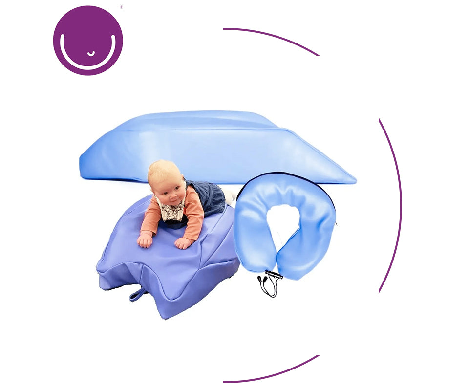 2-in-1 pregnancy pillow and baby pod, perfect for family focused clinics. It also has a handy little hook for storage.